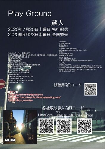 本日二度目の更新。蔵人です。 僕の7作目のアルバム[Play Ground]ですけれども、先行配信まで1ヶ月を切りましたね。 試聴はこちらから soundcloud.com YouTubeのリリックビデオはこちらから Play Ground-Back In The Days Pt.07- youtu.be One youtu.be for …
