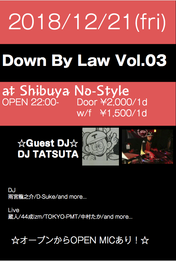 12月21日金曜日に渋谷No-Styleにて開催されるDown By Law Vol.03のフライヤー公開!